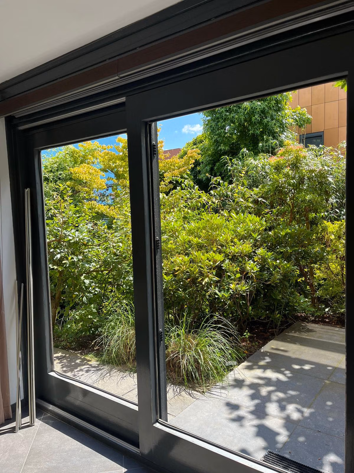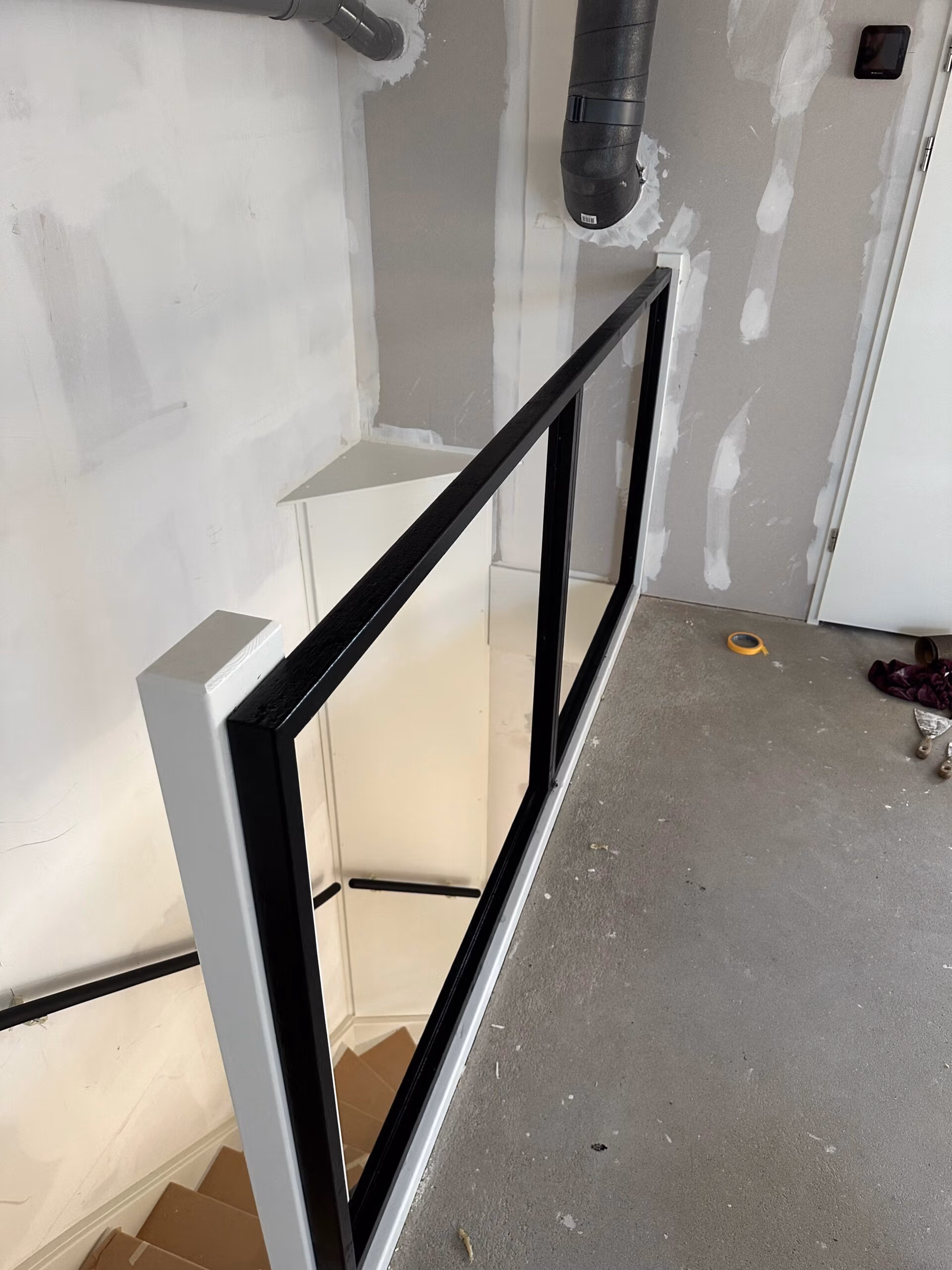 Voor dit project plaatsten we een maatwerk glaswand met slanke zwarte profielen. Het…